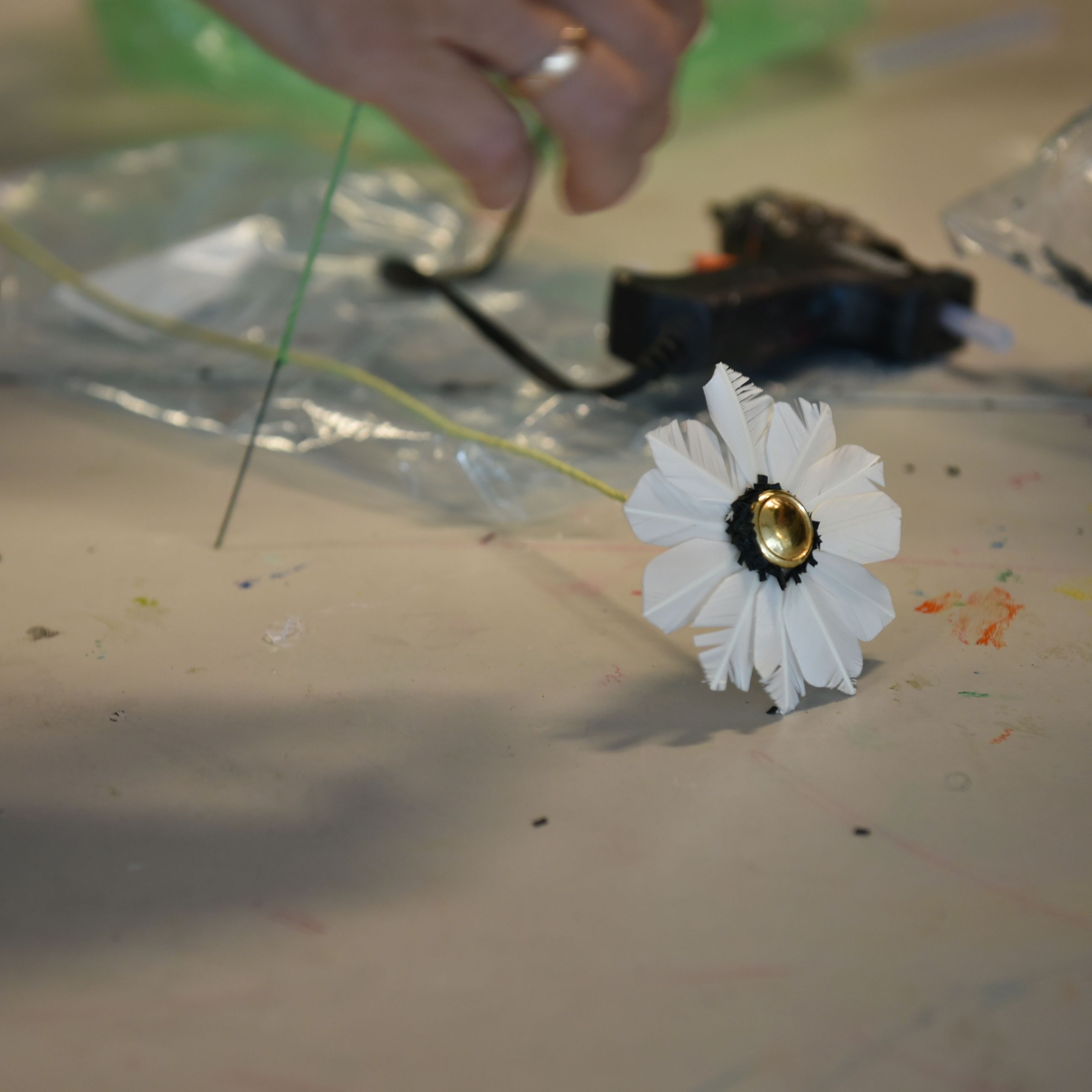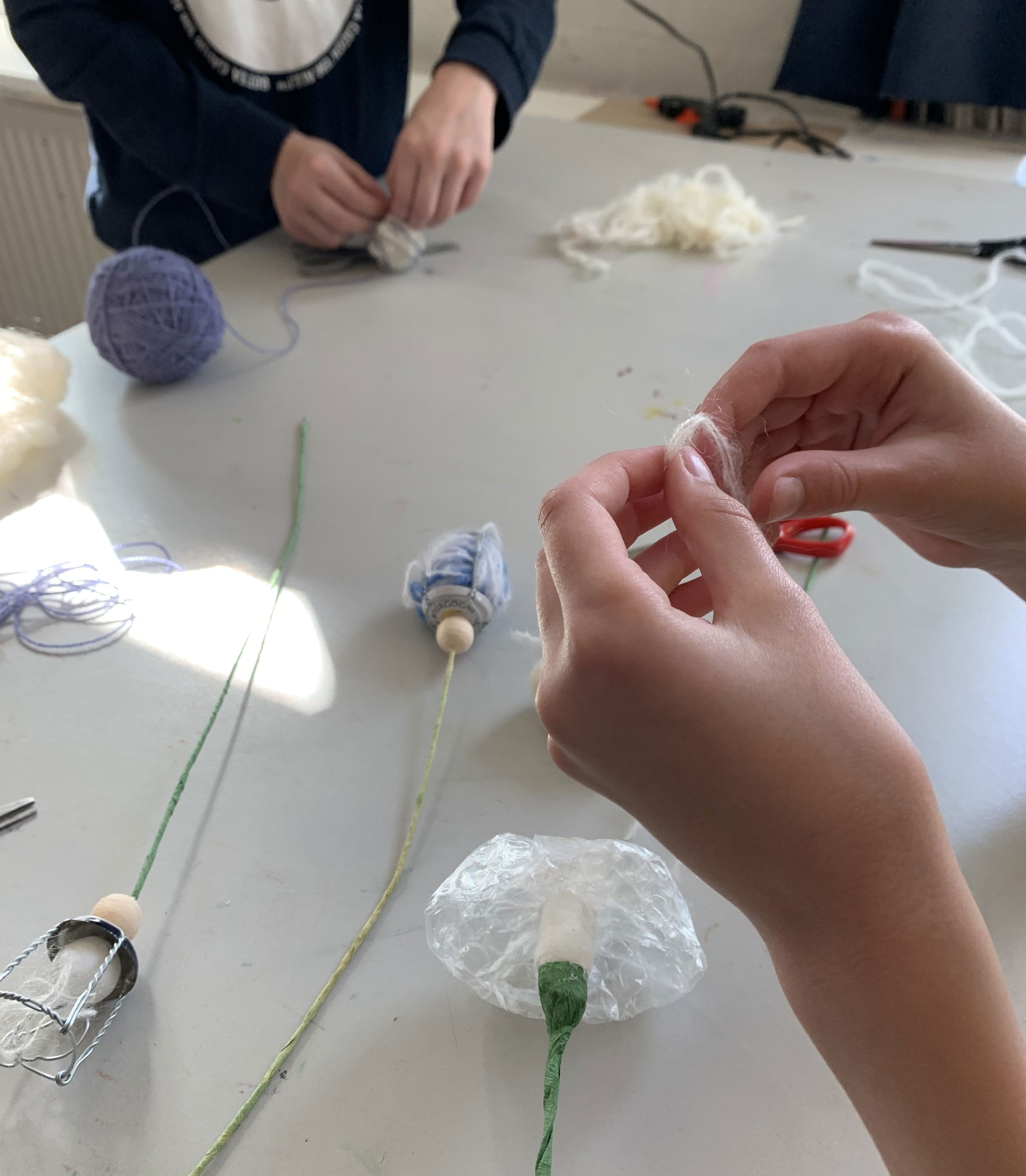 Igennem de sidste måneder har både kunstelever og skoleever deltaget i workshops, hvor der er skabt ReMida-blomster ud af genbrugsmaterialer.